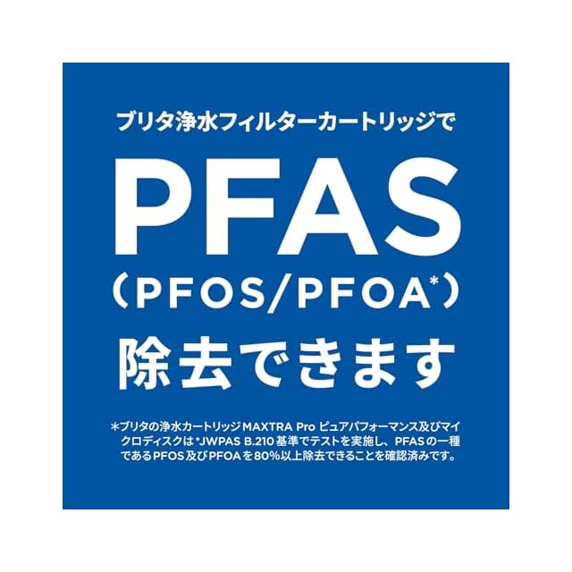 BRITA Japan株式会社では、PFAS(有機フッ素化合物)の一種であるPFOS及びPFOAの除去について、一般社団法人浄水器協会で定められた「JWPAS B.210浄水器の除去性能等試験方法に関する規格基準」に則り、日本国内第三者機関にて試験を実施しました。その結果、PFOS及びPFOAを80%以上除去できることが確認されました。