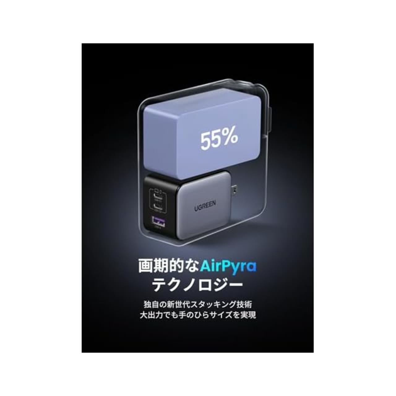 商品名:UGREEN NexodeX【当社比最小】 65W充電器 USB-C*2とUSB-A*1 新生代GaNInfinity™チップ 独自Airpyra技術 PD3.0/QC4+対応 自宅/出張/旅行用 ノートPC iPad iphone17/16/15/14 Galaxy S24 Pixel8 Xperia5以降対応 超急速45W対応 PSE技術基準適合 X754