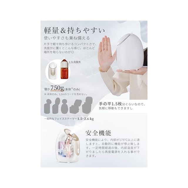 【ANLAN スチーマー】肌の基礎力を上げていく、土台をつくるという意味で、肌に潤いを与えることが重要です。温かい蒸気の力で毛穴を開き、保湿やクレンジングが自宅で簡単にフェイススパを体感できるアイテムです。乾燥が気になる冬場には欠かせない一品でしょう。卓上サイズのコンパクトで、オフィスやお部屋での乾燥対策にピッタリ!