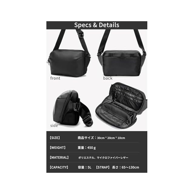 ✅【仕様】 ■ブランド:Zepirion ■商品名:Urban Sling ■外寸サイズ:30cm×20cm×10cm 横型 ■重量:450g ■ストラップ長さ:65~130cm ■生地: 1680Dポリエステル複合素材、マイクロファイバーレザー ■ストラップの種類: ショルダー、 クロスボディ ■留め具の種類: YKK止水ファスナー(ダブルジップ)、マグネット