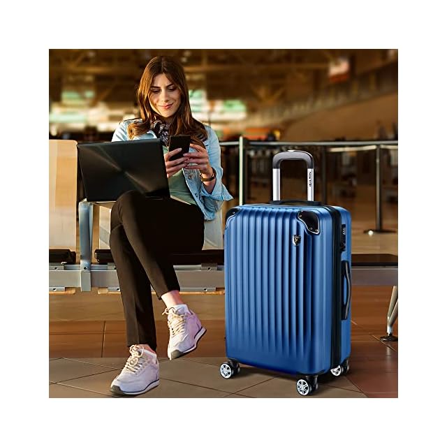 [New Trip] スーツケース キャリーケース 拡張機能付き 機内持ち込み 軽量 大型 S/M/Lサイズ キャリーバッグ 耐衝撃 大容量 ファスナータイプ 静音 ダブルキャスター TSAロック 海外 旅行 ビジネス 出張 (ブルー、Mサイズ:4~7泊/60L)