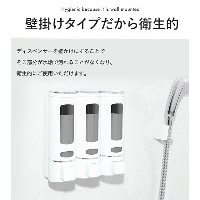 【衛生的な壁掛けタイプ】床置きせずにご使用できますので、一般的なボトルタイプの底のヌメリを気にする必要はありません。 壁掛けにすることで、バスルームをスッキリ収納させることができます。