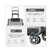 【耐衝撃静音ダブルキャスター】高弾性TPE衝撃軽減素材のキャスターを採用し、より静かで耐摩耗性も向上しています。スムーズな滑りを実現しながら、360度の自由回転もできます。ダブルキャスターデザイン、旅先での移動をよりリラックスで快適になります。角部に硬質コーナープロテクトを追加、衝撃を効率的に吸収でき、より長くご利用いただけます。