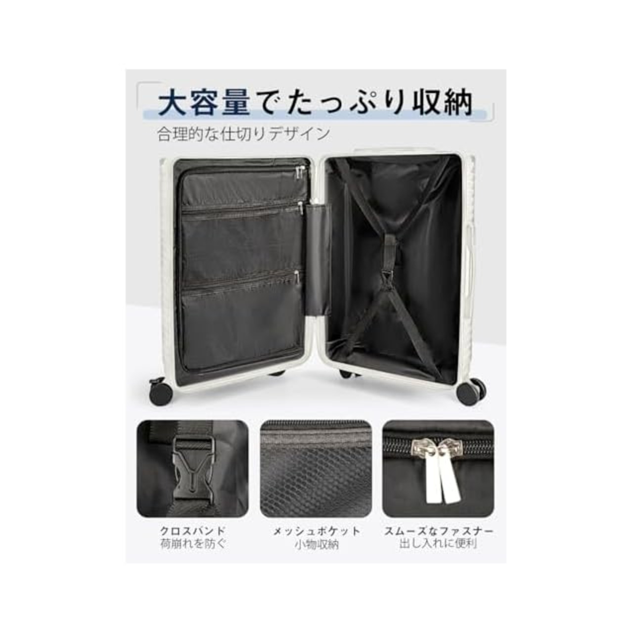 商品名:[Soralifer] スーツケース 機内持ち込み キャリーケース キャリーバッグ ストッパー付き静音キャスター USBポート付き ドリンクホルダー付き 物掛けフック 多機能スーツケース 軽量 静音 ファスナータイプ 旅行 ビジネス 出張 (ホワイト, Mサイズ(3-4泊))