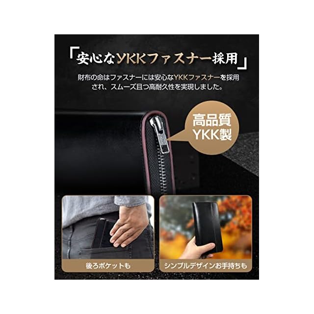 【大容量&YKKファスナー付き】 男女に問わず、大人が選ぶ栃木レザー財布です。財布は表地と内地は牛革を採用して、裏地にはナイロン素材となります。YKKファフナーとこだわりの縫製も欠かせないです。時間に経つと、表面に光沢感が溢れていきます。また、大容量の財布で、小銭入れやカードいれのスペースもたくさんつきます。