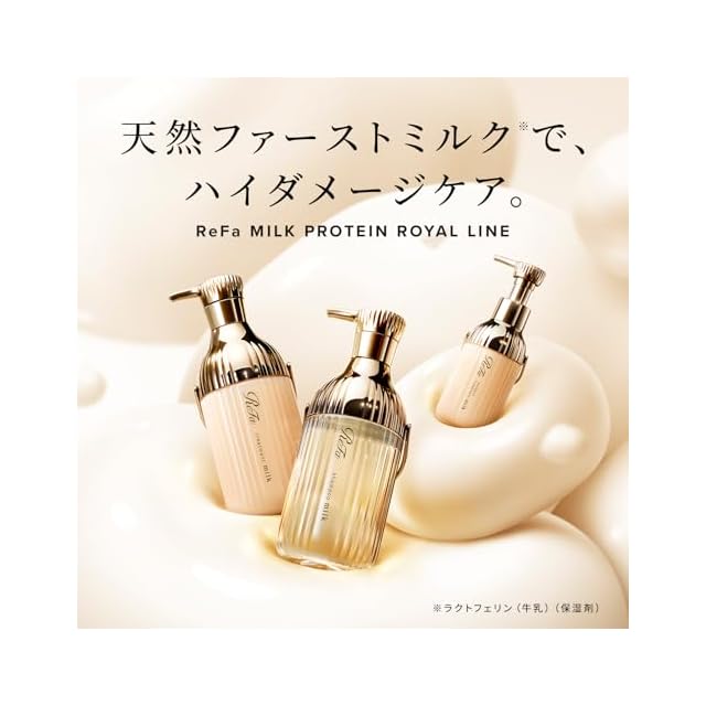 「私たちの髪の80%はタンパク質でできている」という事実に着目し誕生した「ReFa MILK PROTEIN HAIR CARE SERIES」は、2024年8月の発売以来、大変ご好評をいただいています。今回発売するReFa MILK PROTEIN ROYAL LINEは、カラーやブリーチ、パーマなど、自分の好きなヘアスタイルを思いのままに楽しみながら、ホームケアでも美しい髪を持続できるように「天然ファーストミルク由来のプロテイン※1」を新たに配合しました。※1ラクトフェリン(牛乳)(保湿剤)