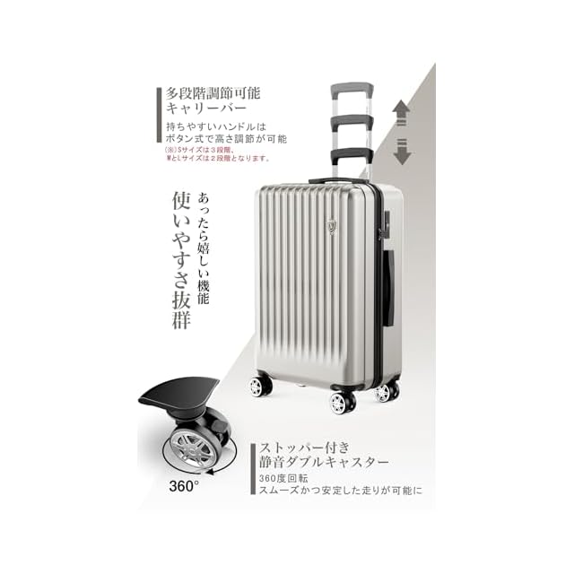 商品タイプ:ストーパー付き スーツケース 機内持ち込み 大型 YKKファスナー 軽量 大容量