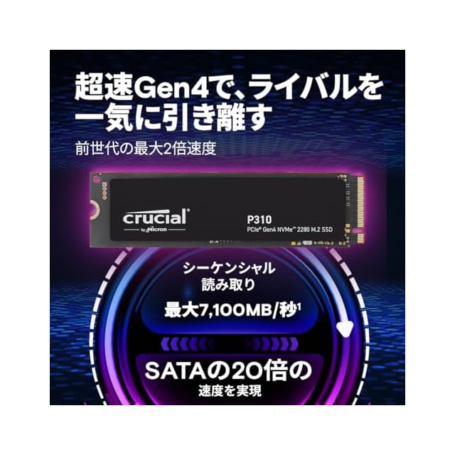 Crucial(クルーシャル) P310 2TB 3D NAND NVMe PCle4.0 M.2 2280 SSD 最大7,100MB/秒 CT2000P310SSD8-JP 国内正規品
