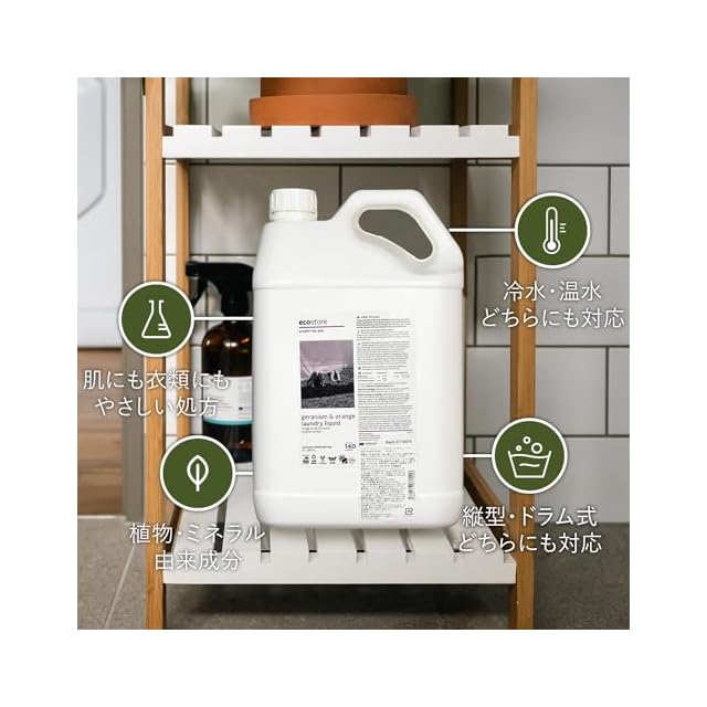 ecostore(エコストア) ランドリーリキッド 【ゼラニウム&オレンジ】 5L 洗濯洗剤 洗剤 液体 植物由来 肌にやさしい 大容量 詰め替え