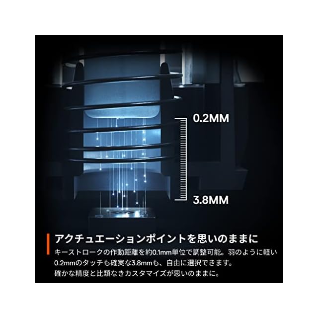 【どこよりも速いRapid Triggerモード】従来の固定されたリセットポイントではなく、スイッチを上げる事で入力がリセットされるようになり、キーを高速で連打することが可能に。