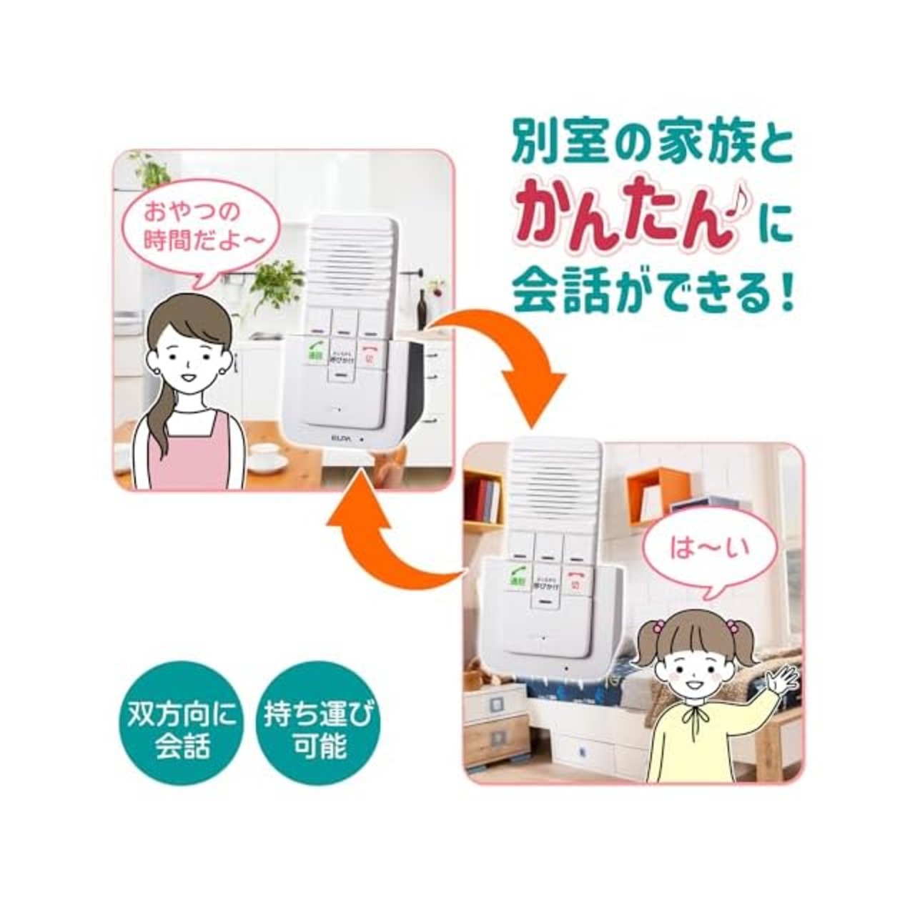 【配線不要!】充電式だから、持ち運んで使用できます。階が変わっても、遠くても通信可能です。