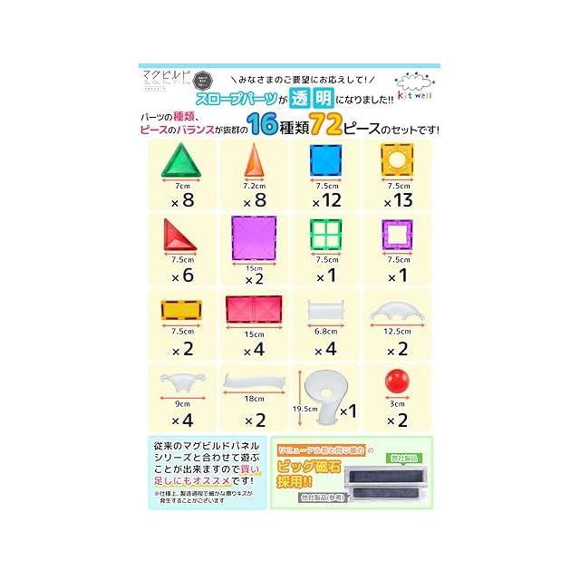 商品名:グッド・トイ 受賞 キットウェル マグビルド スロープセット 72ピース 知育玩具 マグネット ブロック おもちゃ 玉の道