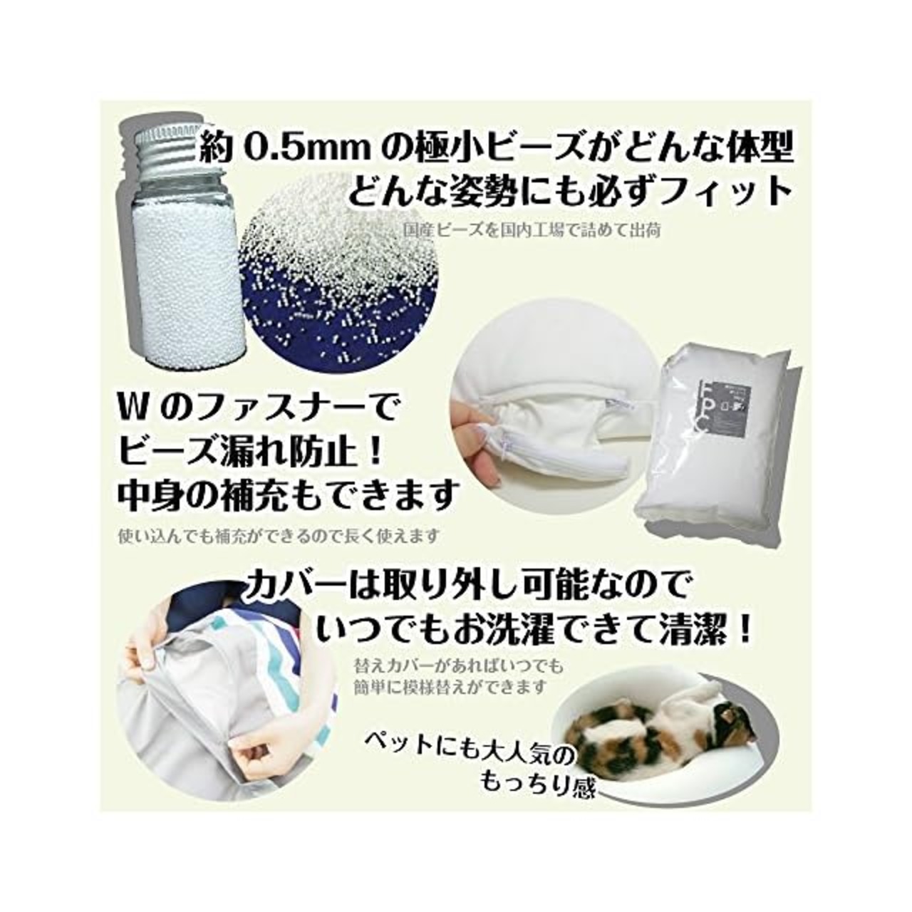 組成 外カバー・伸びる生地:ポリエステル85% ポリウレタン15% 伸びない生地:綿100% 中材:側生地 ポリエステル95% ポリウレタン5% / 詰め物 発泡ポリスチレンビーズ(直径約0.5mm)