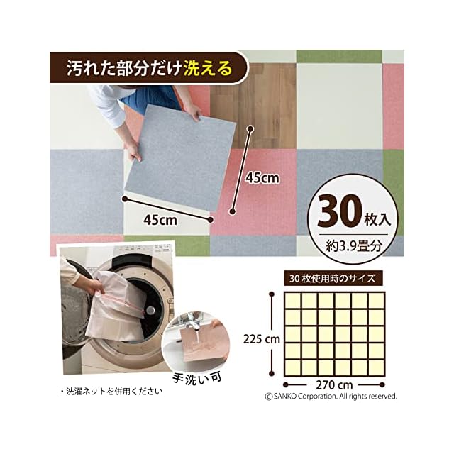 サイズ : 30枚組 【6㎡、3.9畳分】 45×45cm(厚み4mm)、重量:115g(1枚)