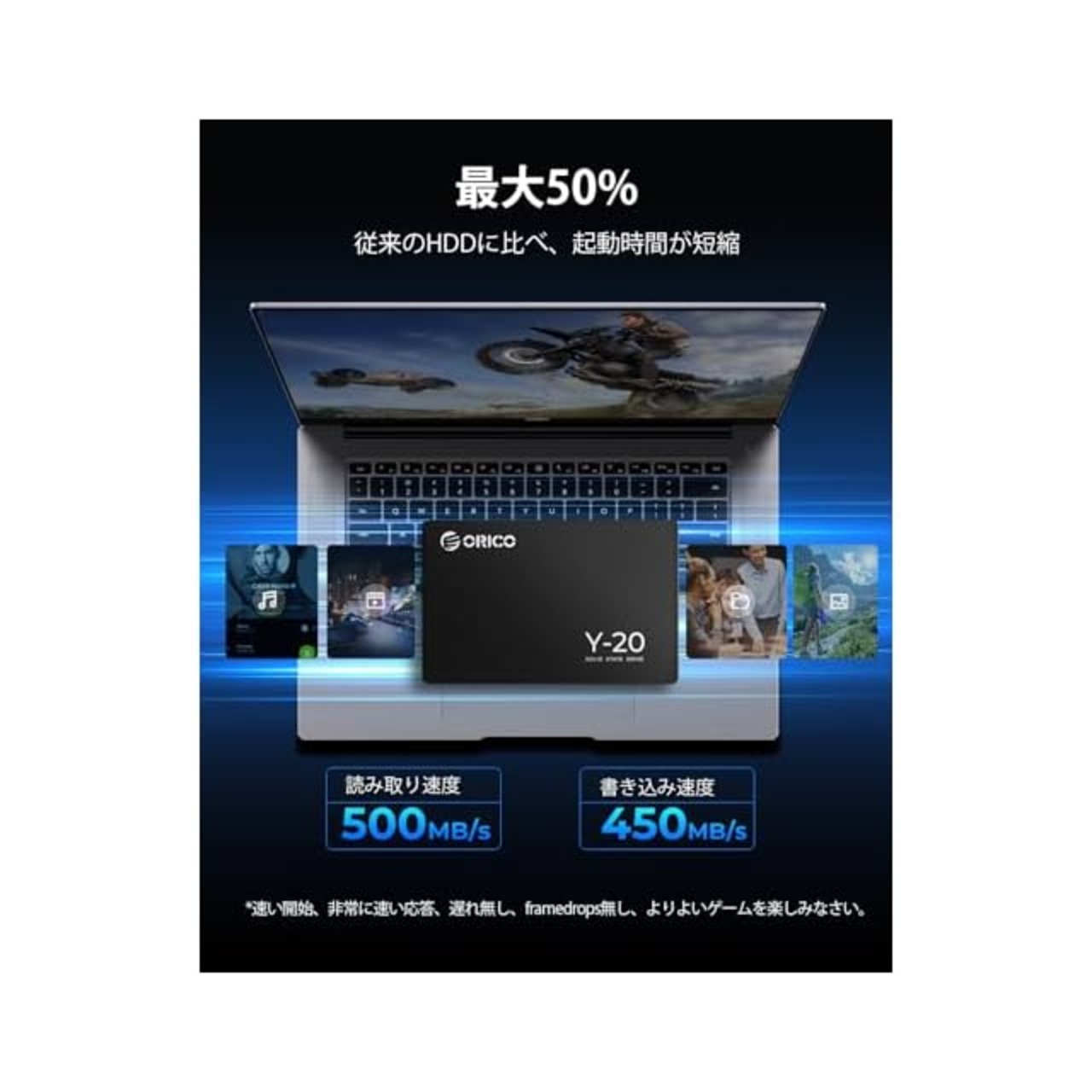 商品名:ORICO Y20 256GB 内蔵型SSD 2.5インチ 7mm 3D NAND採用 SATAIII 6Gb/s 最大読込:500MB/s (R:500MB/s、W:450MB/s) PS4動作確認済み 内蔵SSD 高耐久 メーカー 3年
