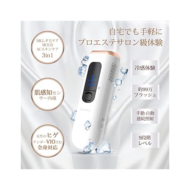 商品名:Sarlisi 脱毛器 全身脱毛 冷感脱毛 IPL光脱毛器 家庭用 9段階調節 99万回照射 連続照射 光脱毛器 光エステ 男女兼用 だつもうきメンズ 髭 無痛脱毛 軽量 VIO対応 手動/自動モード 光美容器 White Ai07