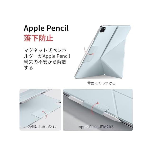 【横/縦置き回転、倒れない縦置き】横置きと縦置き両方を叶えるスタンド機能は使いやすくて便利です。三角形の抜群安定感により倒れなく使えます。折り紙のようにおることで角度は4つ選択でき、ネットサーフィンに動画鑑賞、勉強等の作業向けとスムーズに素早く切り替えられる。 【対応機種】iPad Pro 12.9インチ 2018-2022(第6/5/4/3世代)、iPad Air 13インチ M3 2025 第7世代、iPad Air 13インチ M2 2024 第6世代。※※ご注意: iPad Air 13インチのカメラは小さいため、Folio2を装着後に一部が空いて見えることがありますが、iPad Pro 12.9インチとサイズが近いため、機能的には問題なく使用していただけます。