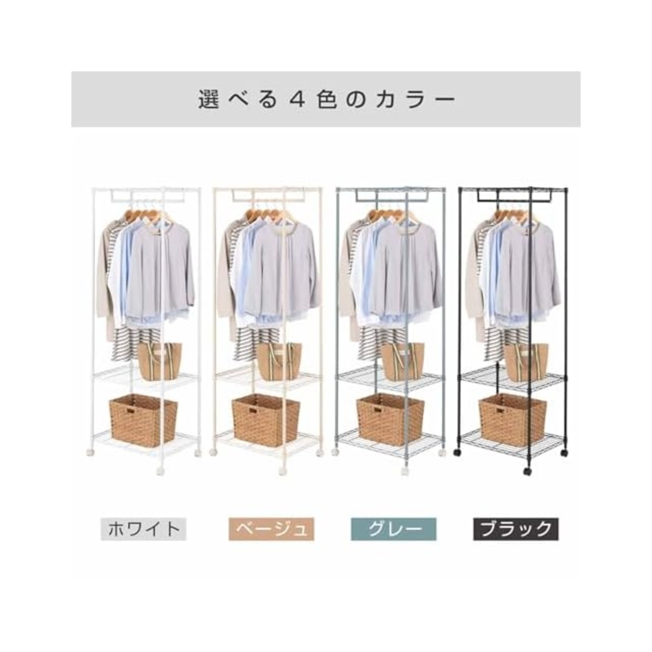 ドウシシャ ルミナス互換 スリム ハンガーラック ワードローブ コンパクト 幅60 お部屋に馴染む おしゃれ 白 ホワイト スチール製 全体耐荷重150kg 頑丈 大容量 棚付き キャスター付き 幅59.5×奥行44.5×高さ178cm 19-60183WH