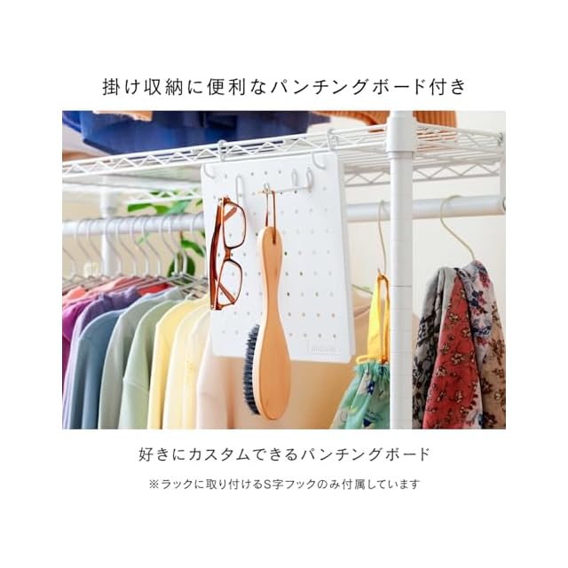 セット内容:棚板×3、ハンガーポール×2、ポール(3分割)×4、アジャスター×4、キャスター×4、パンチングボード×1、スリーブ(取付部品)×12、取扱い説明書
