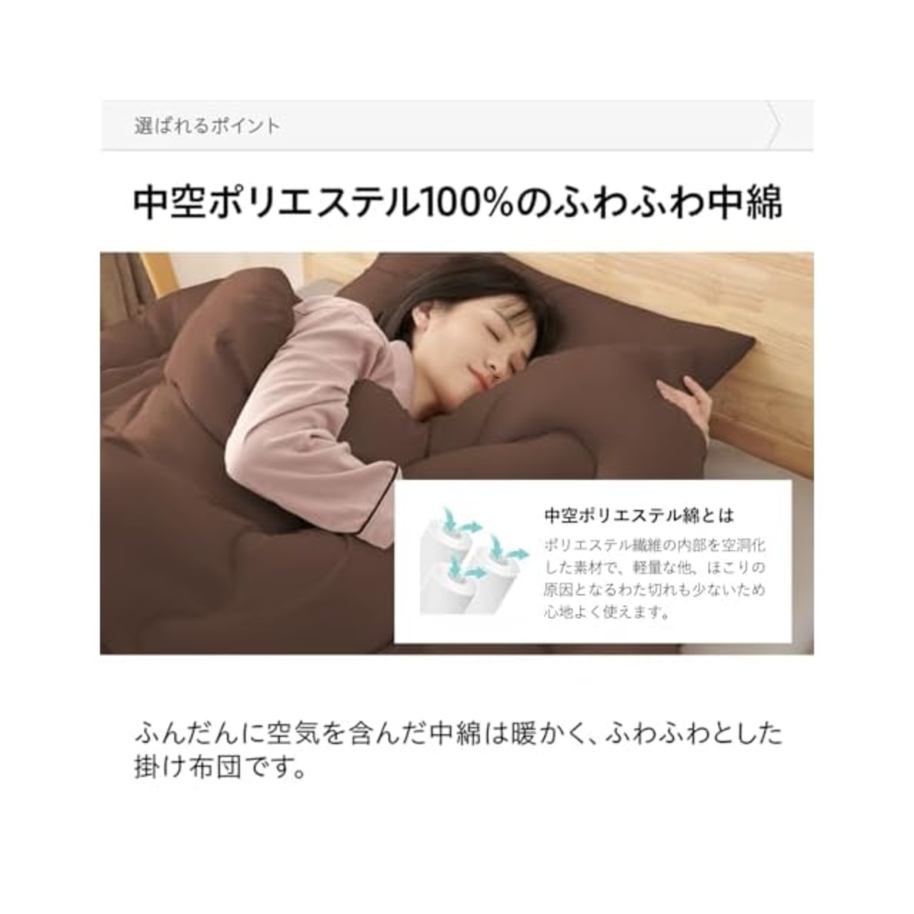 【通気性と保温性兼備の機能性掛布団】この掛布団は、ループ6か所の設計で移動時のずれを防止。通気性抜群の生地を使用しているため、蒸れにくく快適です。防臭加工も施されているので、いつも衛生的にお使いいただけます。保温性能も高く、冬場でも暖かく寝ていただける優れものです。機能性と快適性を兼ね備えた、1年中快適にお使いいただける掛布団です。