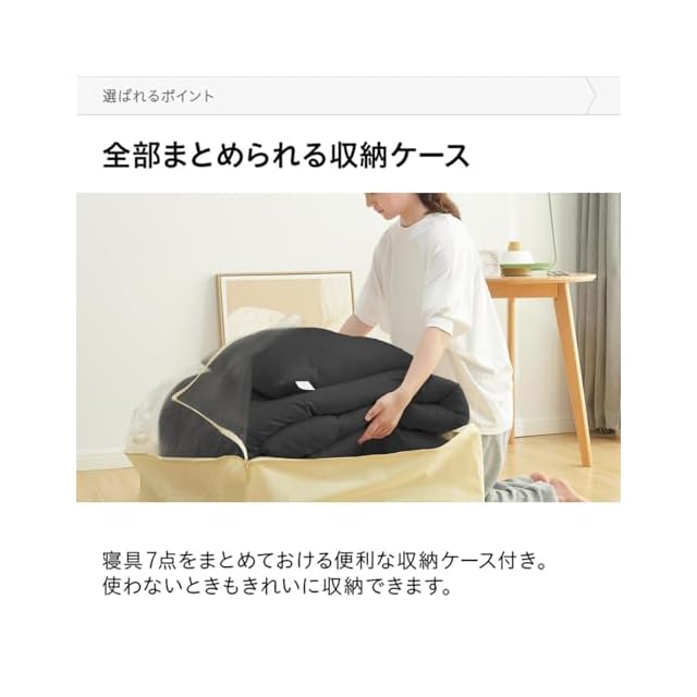 【収納ケース付き】収納袋付きで、シーズンごとの寝具の出し入れもコンパクトで便利!来客用としてもオススメの布団セットです。