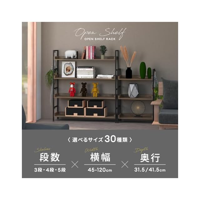 【サイズバリエーションの豊富さ】 ●ちょっとした収納として使うコンパクトサイズから大容量の収納ができる大型サイズまで、使用方法に合わせて棚板の数(3段・4段・5段)と幅(5種類)と奥行き(2種)とカラー(2種)を選べます。 ●高さが違うアイテムを横に並べても統一感が出るように、棚板の高さを全て統一しています。