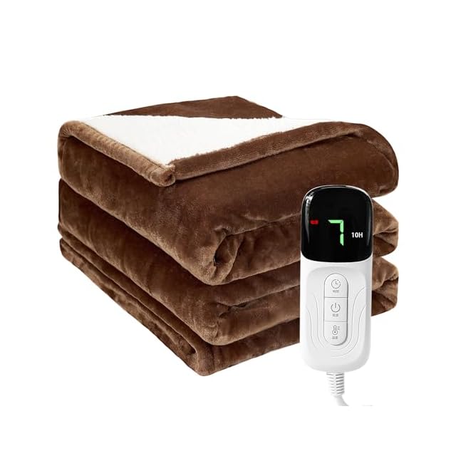 商品名:JUUE 電気毛布 掛け敷き兼用 160×130cm【7段階温度調整& 6段階タイマー】電気ブランケット 【フランネルとサンゴフリース 厚手生地】 3分速暖 恒温加熱 過熱保護 切り忘れ防止 省エネ 柔らか 丸洗い可 ダニ退治 抗菌防臭 防寒対策 暖房器具 肩掛け 膝掛け PSE認証済み(ブラウン)