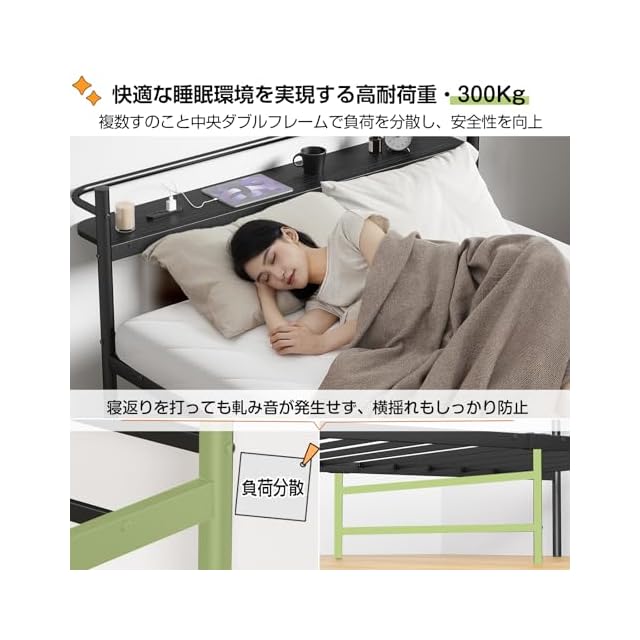 【高い耐久性と安定性:300kg耐荷重で就寝中の軋みもなし】多数のユーザーから「体重を支える剛性が高い」「寝返りを打ってもビクともしない」と高い耐久性が報告されています。12本のパイプワイヤーと6脚サポート、強化された中央連結部分により、300kgの耐荷重を実現。多くのユーザーが「ギシギシ音がしない」「安定感がある」と静音性の高さを実感しています。