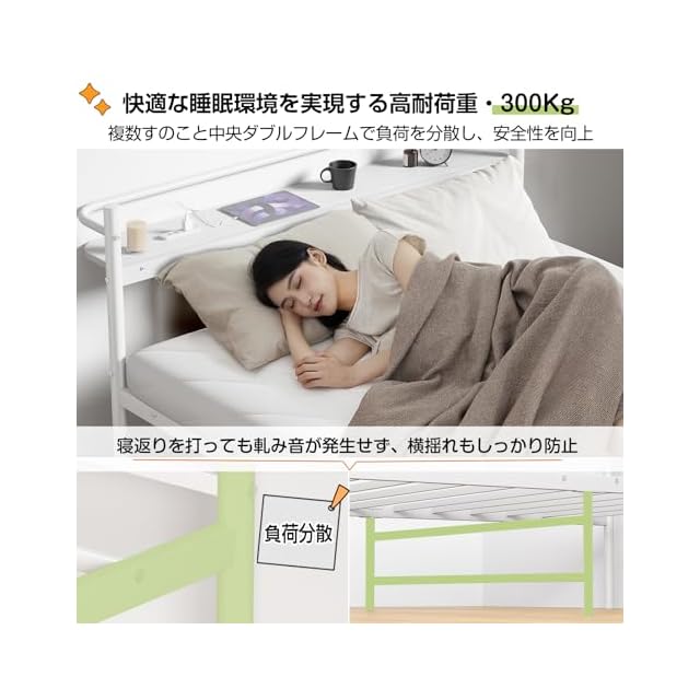 【高い耐久性と安定性:300kg耐荷重で就寝中の軋みもなし】多数のユーザーから「体重を支える剛性が高い」「寝返りを打ってもビクともしない」と高い耐久性が報告されています。12本のパイプワイヤーと6脚サポート、強化された中央連結部分により、300kgの耐荷重を実現。多くのユーザーが「ギシギシ音がしない」「安定感がある」と静音性の高さを実感しています。