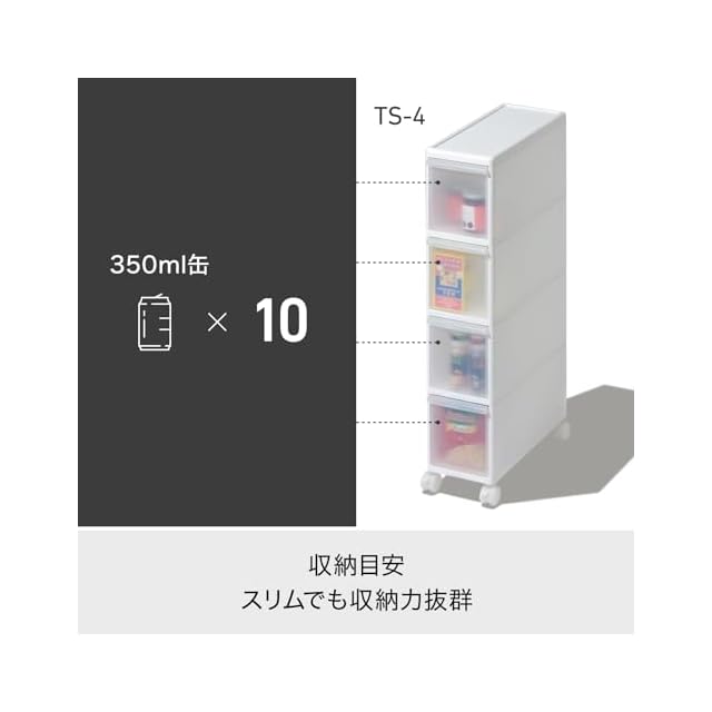 ライクイット (like-it) キッチン収納 すき間 引出し スリム 4段 キャスター付 約幅17x奥46.5x高83cm オールホワイト 日本製 TS-4 隠す収納 幅17㎝ デッドスペース収納 すき間を活用 レトルト食品収納 レトルトカレー
