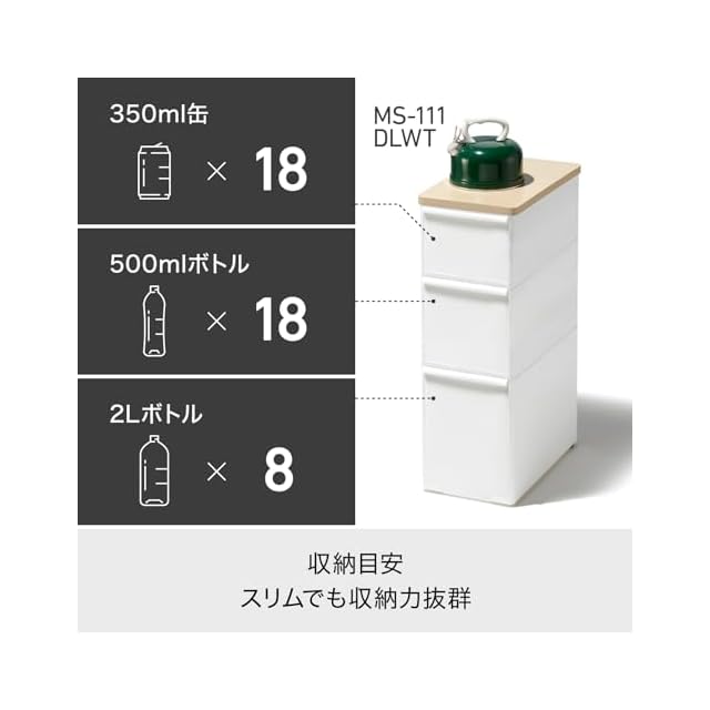 ライクイット (like-it) キッチン収納 耐熱木天板 ストッカー ワイド 約幅27.2x奥46.5x高82.3cm オールホワイト 日本製 MS-111DLWT 幅25.5cm デットスペース収納 すき間を活用 木製天板 耐熱150℃