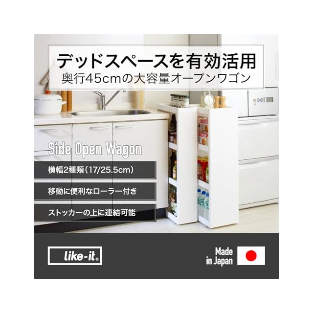 ライクイット (like-it) ワゴン サイドオープンワゴン 4段 スリム ホワイト 約幅17x奥45x高90.5cm SW-4