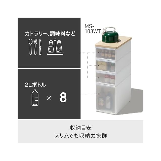 ライクイット ( like-it ) キッチン収納 耐熱木天板 ストッカー ワイド 約幅27.2x奥46.5x高81.8cm ホワイト 日本製 MS-103WT デットスペース収納 すき間を活用 木製天板 耐熱150℃