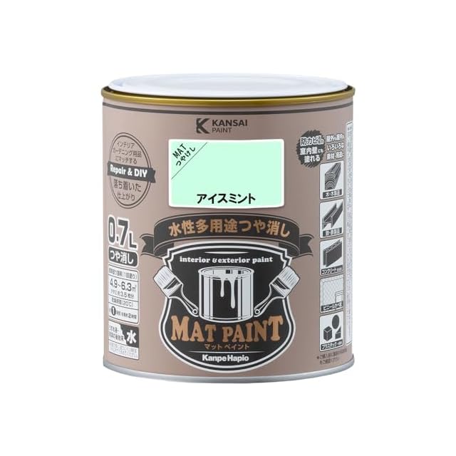 カンペハピオ ペンキ 塗料 水性 つやけし 多用途 マットペイント アイスミント 0.7L 日本製 00347651451007