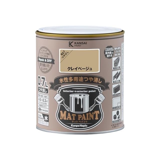 カンペハピオ ペンキ 塗料 水性 つやけし 多用途 マットペイント クレイベージュ 0.7L 日本製 00347652391007