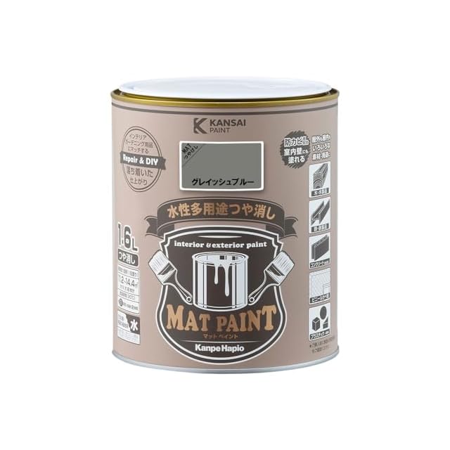 商品名:カンペハピオ ペンキ 塗料 水性 つやけし 多用途 マットペイント グレイッシュブルー 1.6L 日本製 00347651961016