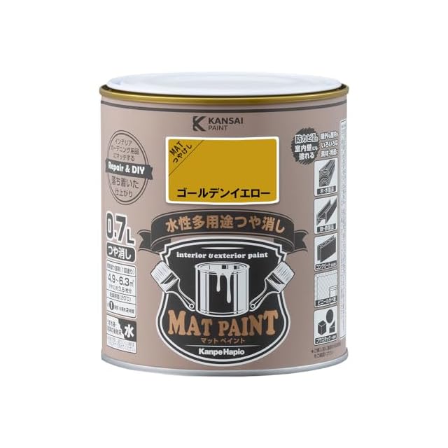 カンペハピオ ペンキ 塗料 水性 つやけし 多用途 マットペイント ゴールデンイエロー 0.7L 日本製 00347651471007