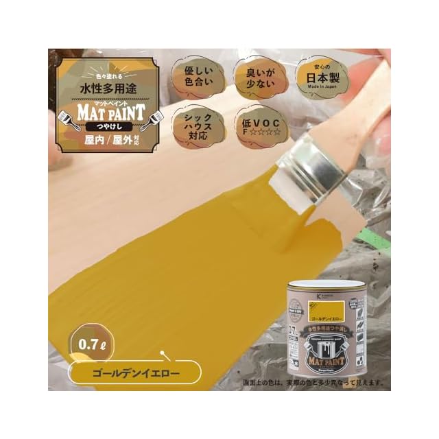 商品名:カンペハピオ ペンキ 塗料 水性 つやけし 多用途 マットペイント ゴールデンイエロー 0.7L 日本製 00347651471007