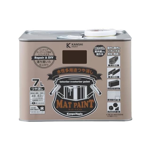 カンペハピオ ペンキ 塗料 水性 つやけし 多用途 マットペイント ダークブラウン 7L 日本製 00347652491070