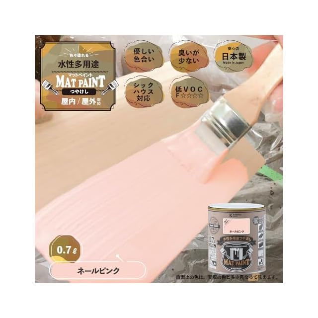 カンペハピオ ペンキ 塗料 水性 つやけし 多用途 マットペイント ネールピンク 0.7L 日本製 00347651401007