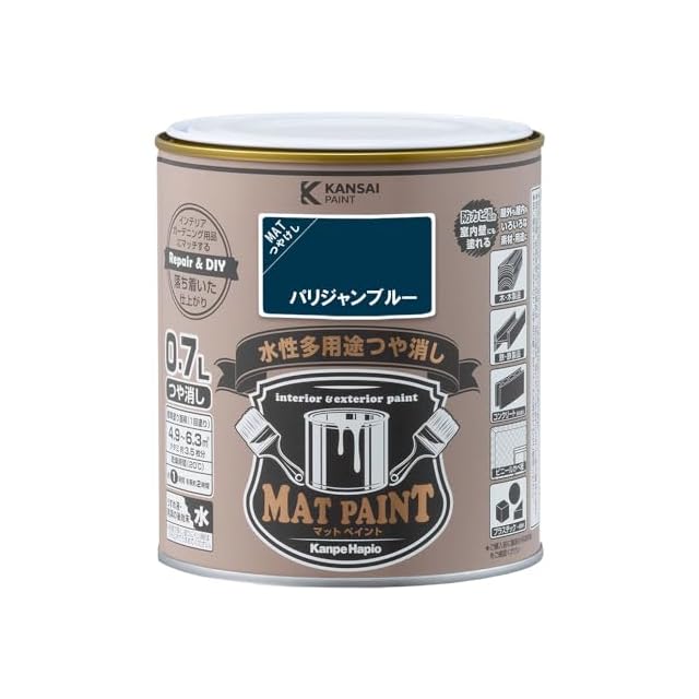 カンペハピオ ペンキ 塗料 水性 つやけし 多用途 マットペイント パリジャンブルー 0.7L 日本製 00347652481007