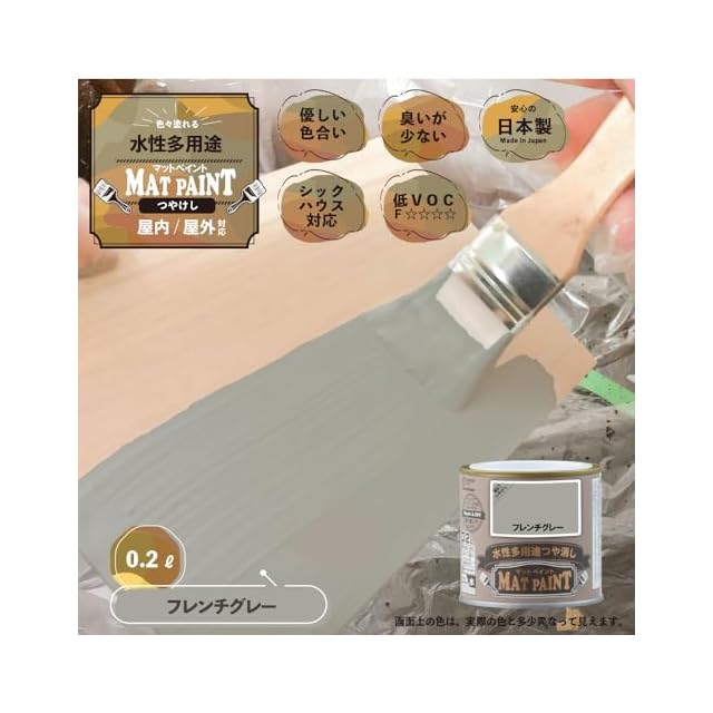 商品名:カンペハピオ ペンキ 塗料 水性 つやけし 多用途 マットペイント フレンチグレー 0.2L 日本製 00347652411002