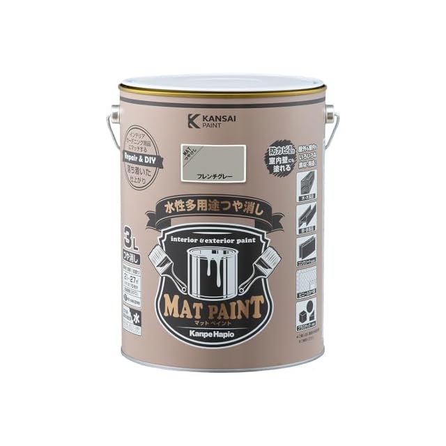 カンペハピオ ペンキ 塗料 水性 つやけし 多用途 マットペイント フレンチグレー 3L 日本製 00347652411030