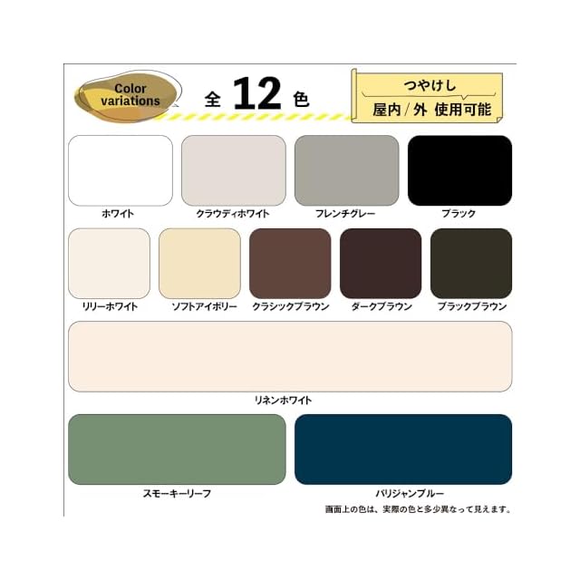 【特長】■[落ち着いたツヤ消し仕上がり]優しい色合いのつや消しタイプ。 落ち着いたツヤがガーデニングの花や植栽、他のインテリアの色調にマッチします。 ■[屋外・屋内 幅広く使用できます]屋内外の木部・鉄部・コンクリート・プラスチックから、かべ紙まで幅広い用途に使用できます。 ■[防カビ剤配合]長期間カビの発生を防ぎます。 ■[塗りやすい塗料]臭いが少なく、乾燥が速く、塗りやすい水性塗料です。