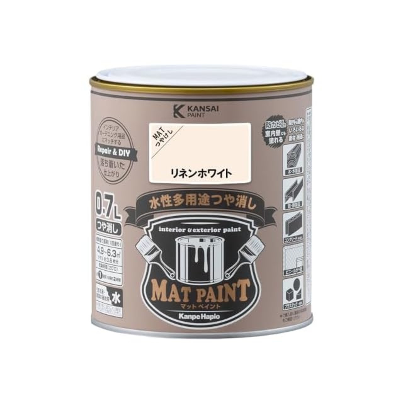 商品名:カンペハピオ ペンキ 塗料 水性 つやけし 多用途 マットペイント リネンホワイト 0.7L 日本製 00347652401007