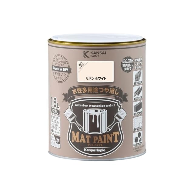 商品名:カンペハピオ ペンキ 塗料 水性 つやけし 多用途 マットペイント リネンホワイト 1.6L 日本製 00347652401016