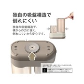 ①独自の吸盤構造で倒れにくい。横からの力に強く、倒れにくいから安心です。②沸騰させたキレイな蒸気で清潔。沸騰されたキレイな蒸気でお部屋を潤します。