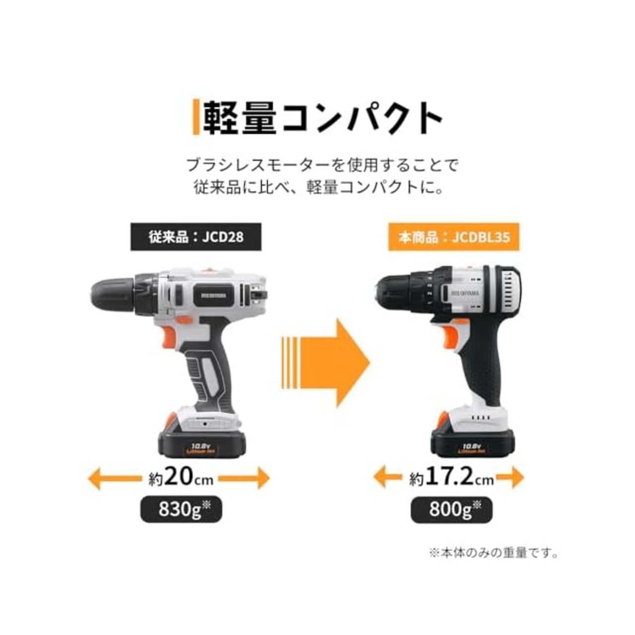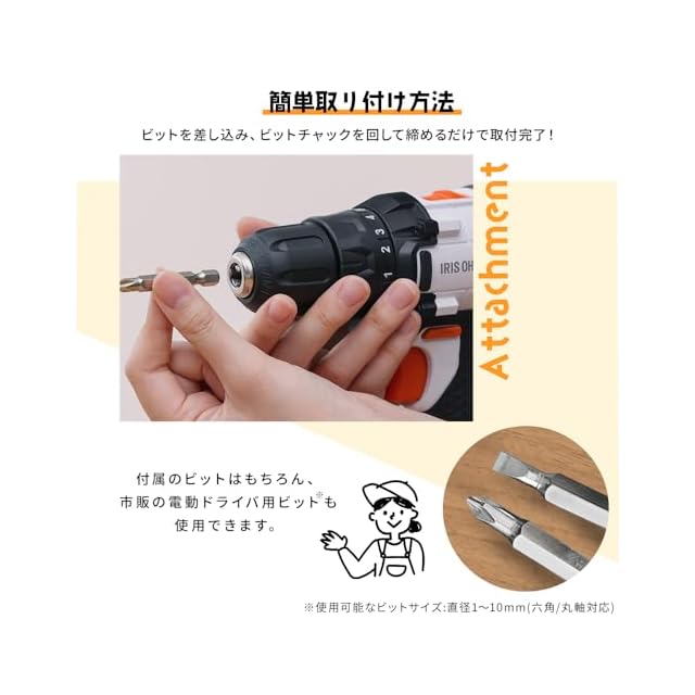 商品名:2023モデル アイリスオーヤマ 充電式 ドライバドリル メンテナンス不要 JCDBL35 10.8V バッテリー・充電器付 軽量&スピード調節機能 DIY初心者でも使いやすい 【10.8V共通バッテリーシリーズ】