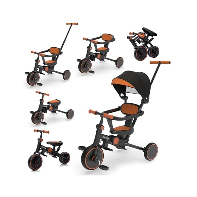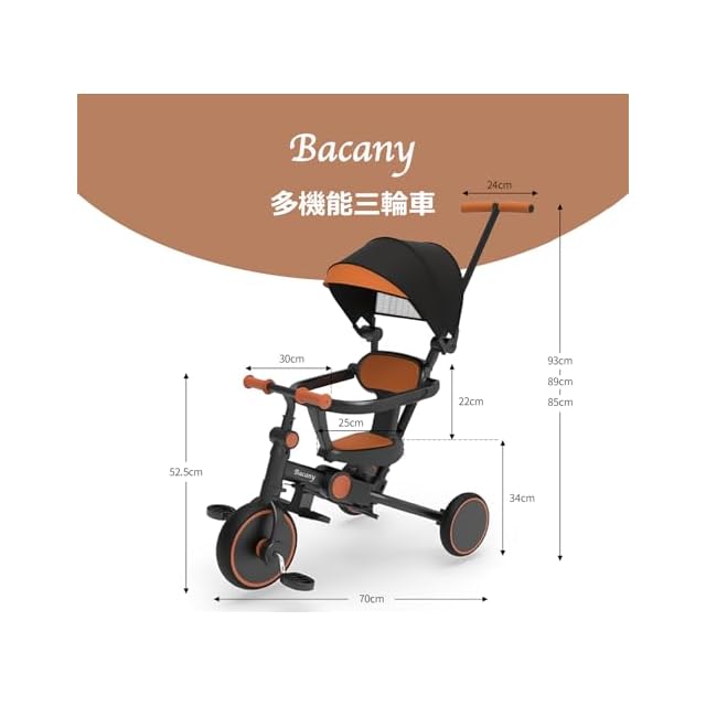 Bacany 子供用三輪車 7in1 三輪車 折りたたみ 手押し棒 おしゃれ 1歳-6歳 コンパクト 自転車 おもちゃ 乗用玩具 幼児用 キッズバイク プレゼント おもちゃ 調整可能 お祝い ギフト シートベルト付き