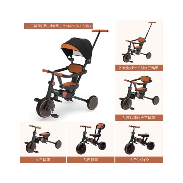 【7IN1多機能三輪車】適応年齡:1~6歲,本体素材:炭素鋼とEVA/重量:6.3kg/梱包サイズ:69×17×39cm耐荷重:25kg .※個体差やモニター環境により、色やサイズが若干異なる場合がございます。予めご了承の上ご注文くださいませ。子供用三輪車は6つのモードがあります。1. 三輪車(押し棒&背もたれ&ベルト付き) 2.押し棒付き三輪車 3.安全ガ一ド付き三輪車 4.自転車 5.子供バイク 6.三輪車 押し棒を外して通常の三輪車として、お使いいただけます 7.収納と展開できるステップ機能追加。コントロール力が身につけられ自転車に乗るための練習用最適です。子供バイクは足蹴り走行なので、乗っているうちに足腰が鍛えられ運動能力のアップが期待できます。